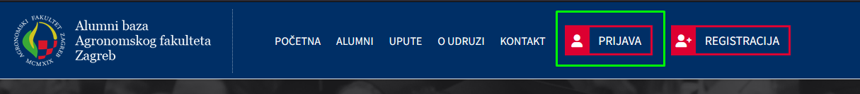 Kada je registracija odobrena, korisnik se može prijaviti na stranicu pomoću linka Prijava.