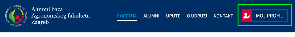 Nakon uspješne prijave korisnik može uređivati svoje podatke klikom na link Moj profil.