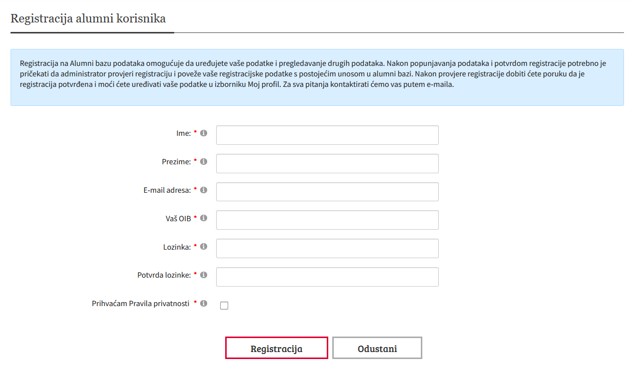 Upute alumni korisnicima za registraciju i korištenje aplikacije